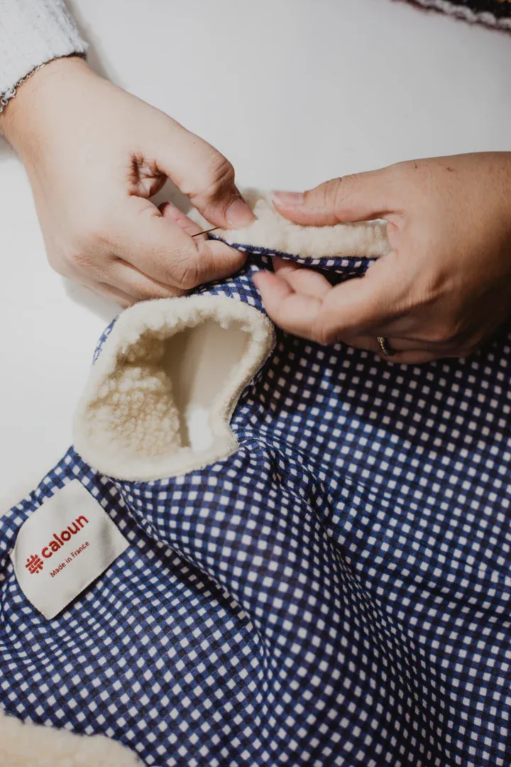Le gilet de berger, c’est peut-être la pièce la plus ingénieuse. Conçu pour remplacer les combinaisons épaisses dans lesquelles on craint toujours de coincer un bras ou d’ébouillanter un bébé, il s’enfile en douceur, s’adapte à toutes les saisons et laisse les petits explorer en toute liberté. En plus, il est réversible et doté d’une poche en jean made in France, pensée pour ranger une tétine avant qu’elle ne s’évapore mystérieusement.