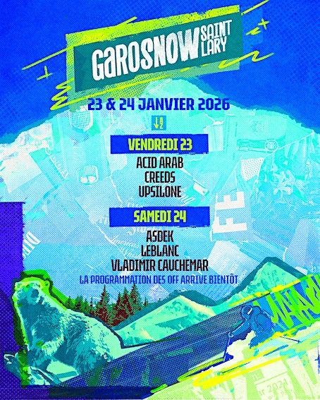 Grâce à un partenariat exceptionnel signé pour 3 ans avec les organisateurs de Garosnow, la station de la vallée d’Aure va groover tout l’hiver et se tailler une place au soleil sur les platines des Pyrénées avec notamment Acid Arab, Creeds, Upsilon, Asdek, Leblanc, Vladimir Cauchemar, Synapson…
