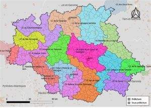 Plusieurs de nos intercommunalités sont à cheval sur deux départements : les CC Pays de Nay (siège à Bénéjacq, mais 2 des 29 communes sont dans le 65), Adour Madiran (siège à Vic-en-Bigorre, 11 des 72 communes dans le 64), Aire-sur-l’Adour (10 communes sur 22 dans le Gers) et des Deux Rives (La CC de Valence-d'Agen, dans le Tarn-et-Garonne, dont fait partie la commune gersoise de Saint-Antoine de Pont d'Arratz, parmi un total de 28).